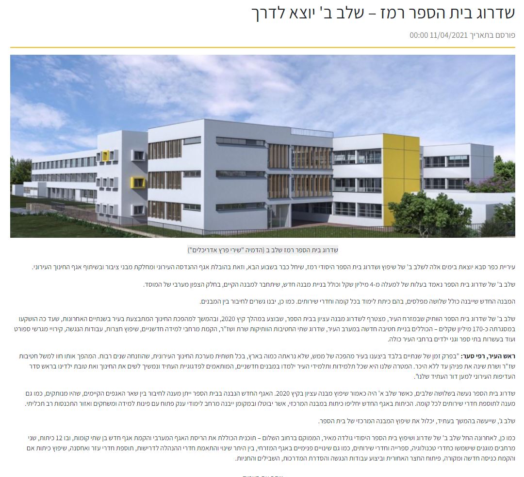 משרד אדריכלים » כתבות מן התקשורת » שדרוג בית הספר רמז – כפר סבא