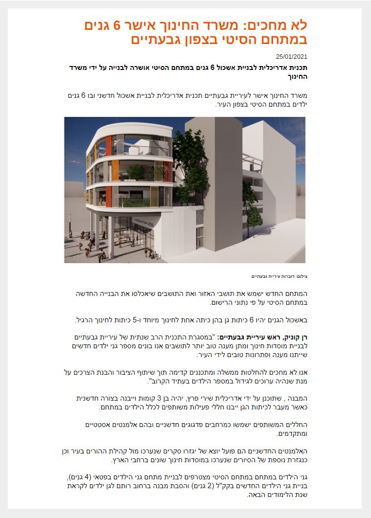 משרד אדריכלים » כתבות מן התקשורת » 6 גני ילדים במתחם הסיטי בצפון גבעתיים